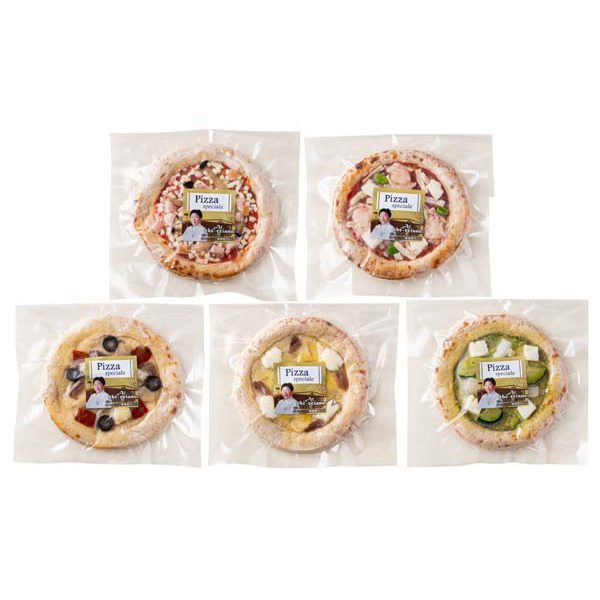 内容:スモークチキンときのこのトマトピザ115g×1、ズワイガニとだだ茶豆のピザ130g×1、白身魚と魚介たっぷりのマリナーラピザ95g×1、シチリア産アンチョビとガーリックのピザ86g×1、ローストイカとイタリア産グリルズッキーニのジェノベーゼピザ105g×1