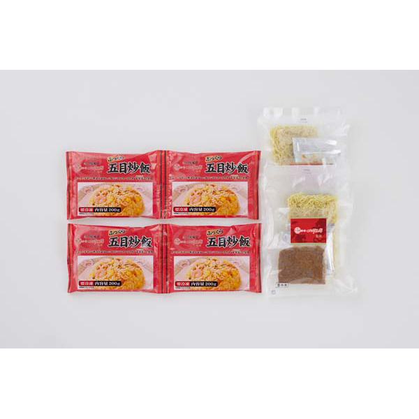 内容:担々麺セット326g(麺200g、ごまだれ38g、液体スープ58g、ザージャン(肉みそ)30g入)・ふっくら五目炒飯(200g×2)×各2