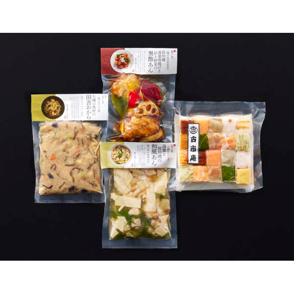 内容:なみはや寿司(鯖、海老、サーモン、穴子、鯛、昆布、カニ、大根酢〆、高菜×各2、玉子×1、玉子焼き×1(ごはん無し))×1、九種の具材の田舎おから煮150g×1、湯葉と長州鶏の和風あん150g×1、長州鶏湯葉唐揚げと彩り野菜の黒酢あん150g×1