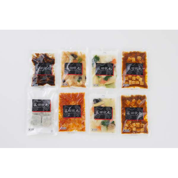 内容:ずわい蟹入りエビチリソース130g×1、彩り八宝菜150g×2、黒醋酢豚150g×1、麻婆豆腐(豆腐入り)150g×2、エビニラまんじゅう(4個入)140g×1、エビとイカのXO醤炒め130g×1