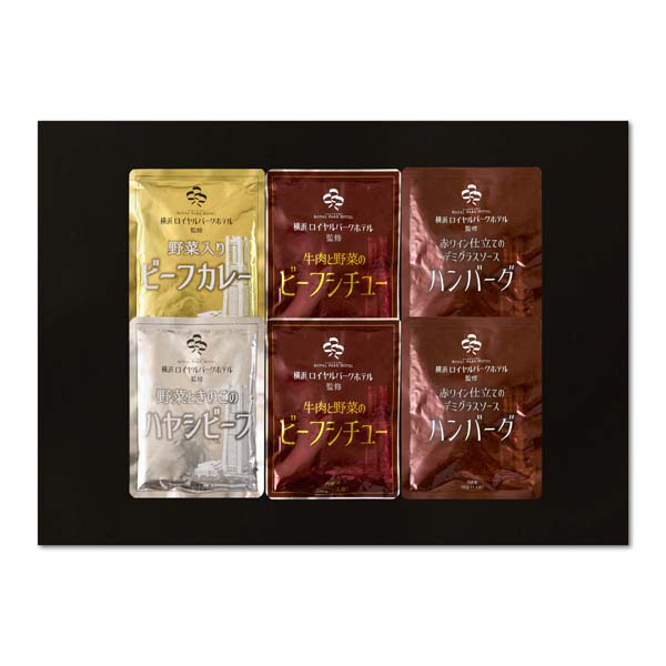 横浜ロイヤルパークホテル監修のカレー、ハヤシビーフ、ビーフシチュー、デミグラスソースハンバーグの4種類を味わえるセットです。湯せんするだけですぐにお召し上がりいただけます。