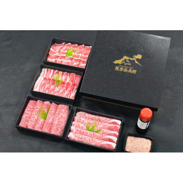 鹿児島 「薩摩公兵衛」 和牛と黒豚の四段重しゃぶしゃぶ詰合せ