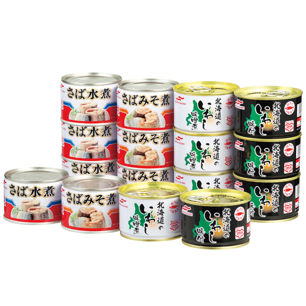 内容:さば水煮150g・さばみそ煮150g・北海道いわし味付150g・北海道いわしみそ煮150g×各4(計16缶)