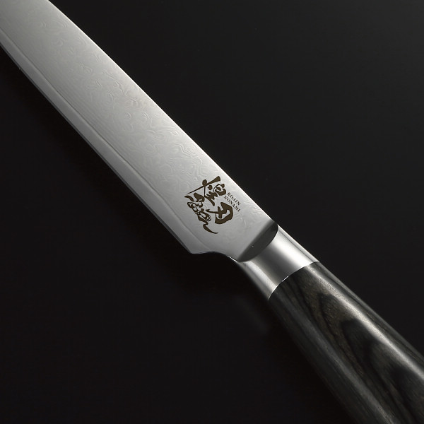 切れ味抜群!美しいデザインの高級包丁。煌刃乃波(こうじんのなみ)「煌」は輝きを意味し、包丁が美しく輝く様子を表しています。ダマスカス包丁特有の波のような美しい模様も表現したのが煌刃乃波というブランドです。ダマスカスは積層された鋼材のことを言います。そのままの断面は木材の年輪のように積層された枚数だけの直線が現れます。曲げたり板に変化を持たせた後、斜めにカットをすると表面に色々な模様が現れます。板に変化を付ける方法により現れる千差万別の模様がダマスカス鋼の最大の魅力です。長く使ってほしいから一番劣化しやすい持ち手は耐久性の高い材質を選びました。パッカー材を何層にも重ねてレジンをしみ込ませ高温圧縮し作られます。そのため天然木に対して強度が高く耐水性に優れています。また、積層構造のため磨き上げた表面は非常にきれいに仕上がっています。