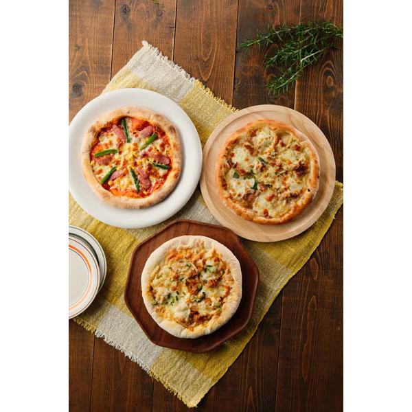 淡路島の食材・えびすもち豚にこだわった冷凍ピザで、生地はフランスパンベースで歯ごたえのあるもっちり系。淡路島特産の玉ねぎとの相性も抜群で、3枚それぞれ特色のある味をお楽しみいただけます。