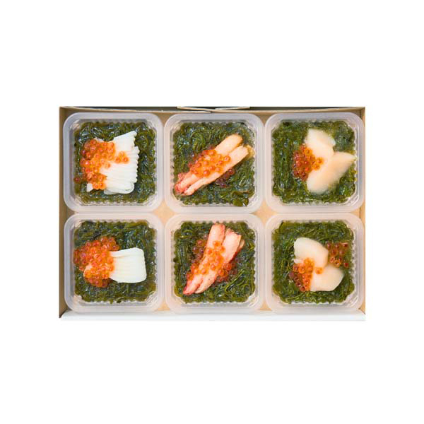 甘えび魚醤を隠し味に使用したタレに漬け込んだめかぶに、いくらと北海道産のいか、かに、帆立を組合せ、一膳分の茶碗にちょうど良いサイズで小分けパックに詰めました。めかぶが持つネバトロの食感と豊かな磯の香りが食欲をそそります。温かいごはんにのせて味わうのはもちろん、冷やしたうどんやそばのトッピングにもぴったりです。