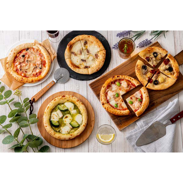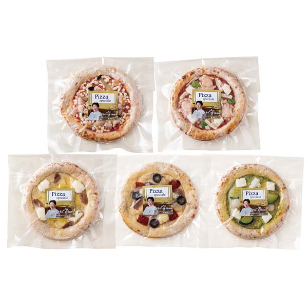 内容:スモークチキンとローストきのこのトマトピザ・まるずわいがにとだだ茶豆のトマトピザ・アンチョビとローストガーリックのピザ・魚介たっぷりのマリナーラピザ・ローストいかのジェノベーゼピザ×各1枚(直径約15cm)