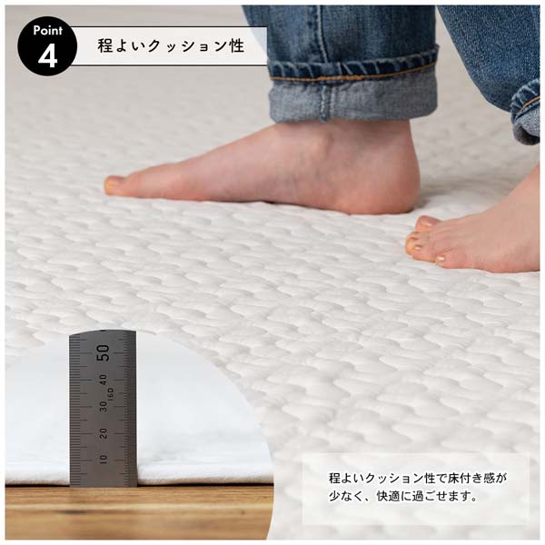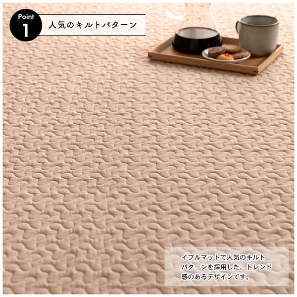 ●人気のイブルマットのキルトパターンを施したラグマット。●表地はコットン100%なのでお子様にも安心。●程よいクッション性がありながら軽量で扱いやすく丸洗いも可能。●イブルマットで人気のキルトパターンを採用した、トレンド感のあるデザイン。●非常に軽量な設計なので、持ち運びも簡単で扱いやすいのがポイント。●コンパクトに小さく畳む事が出来るので収納にも困りません。●程よいクッション性で床付き感が少なく快適。●洗濯機で丸洗いする事が出来るので衛生的。●裏面は滑り止めが付いているので安心。