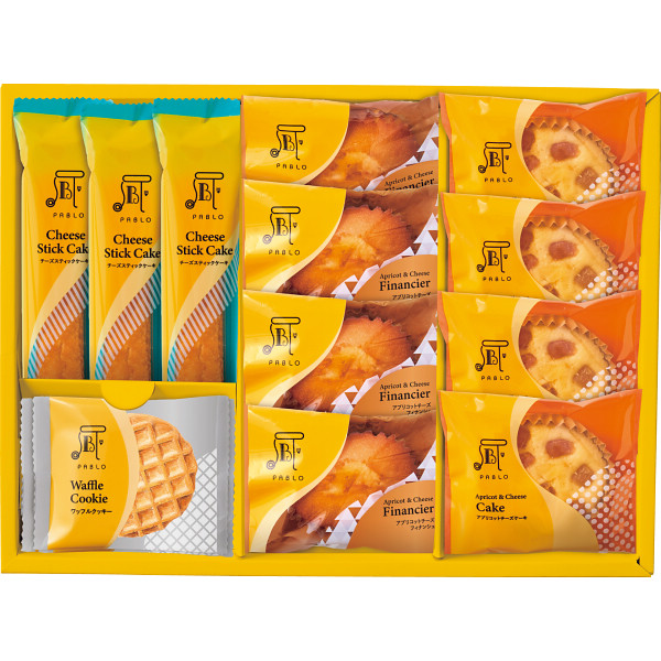 内容:アプリコットチーズフィナンシェ・アプリコットチーズケーキ・ワッフルクッキー×各4、チーズスティックケーキ×3