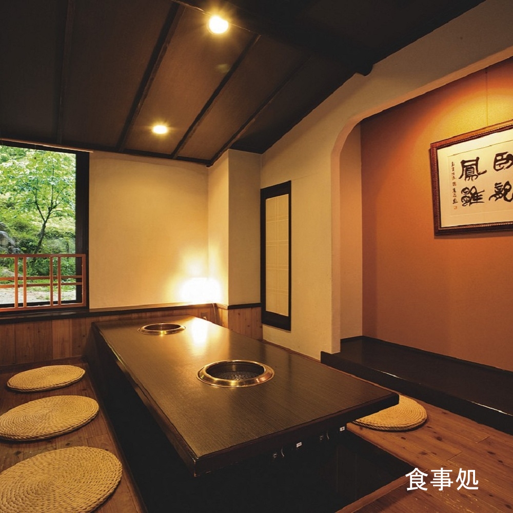 和をコンセプトとした館内は落ち着いた雰囲気。豊富なお湯は湯舟から心地よい音色とともに流れ出ています。緑に囲まれた露天風呂では、湯あみと共に森林浴も体感。お食事は個室で会席をご用意します。