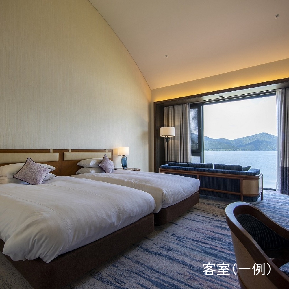 芦ノ湖のほとりに佇み美しい風景が広がる、洗練された空間。最上階の客室は、アーチを描く高い天井が開放感のある広さを演出。額縁をイメージしてデザインされた窓枠は、まるで絵画のように芦ノ湖を映し出します。