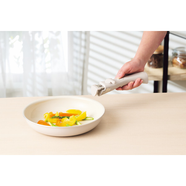 商品サイズ:現品(18cm蓋付片手鍋)約19φ×7.8cm・本体重量=約440g、(24cm深型フライパン)約25.5φ×7cm・本体重量=約515g、(26cmフライパン)約27.5φ×5.6cm・本体重量=約472g、(ハンドル)約4.5×19×5cm