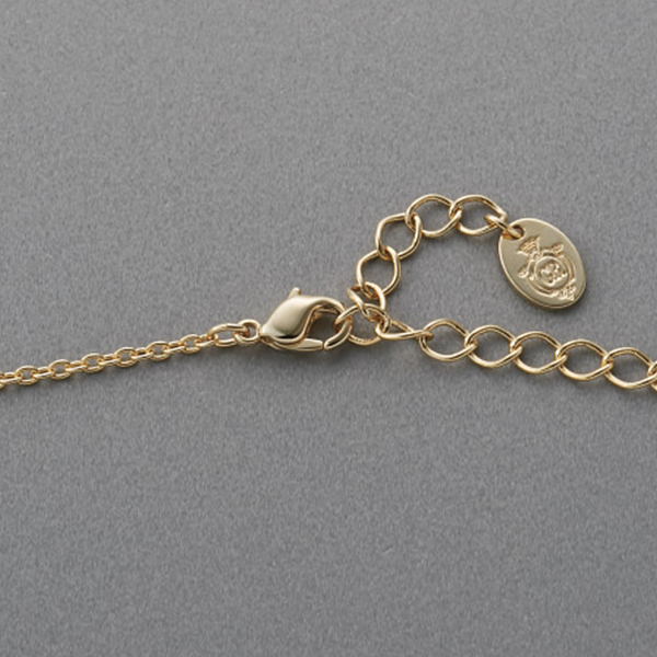 内容:●錫合金(ゴールドカラーメッキ)・真鍮(ゴールドカラーメッキ)・クリスタルガラス●現品(チェーン全長)約49cm(アジャスター約5cm含)・(トップ部)約10×15mm・カニカン式留め具