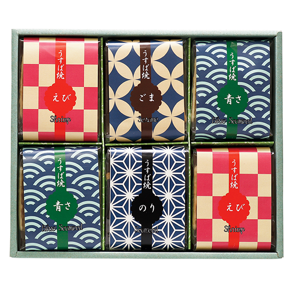 内容:海老・あおさ海苔 各20枚、黒胡麻・海苔巻 各9枚/計58枚