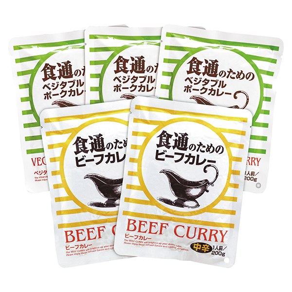 内容:ビーフカレー(中辛口)200g×2食、ベジタブルポークカレー(甘口)200g×3食/計5食(レトルトパウチ)