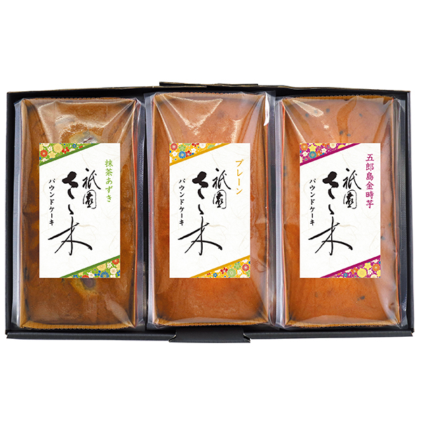 「祇園さゝ木」監修のパウンドケーキは、シンプルな美味しさが味わえるプレーンと、宇治抹茶を使用した生地に北海道産のあずきを混ぜ込んだ抹茶あずき、加賀野菜の五郎島金時を練り込んだ香り豊かな五郎島金時芋の3種類。どれもしっとり、ふんわりとした焼き上がりが自慢です。
