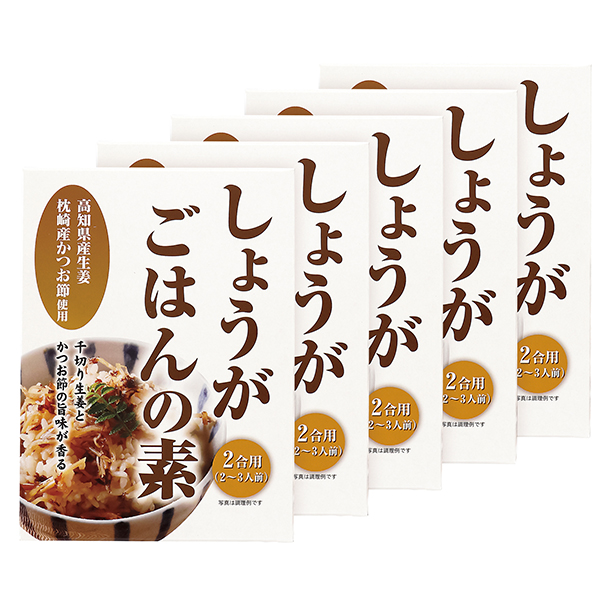 高知県産生姜の千切りを、小豆島で作られた本醸造醤油と枕崎産のかつお節で炊き込みごはんの素に仕上げました。素朴な味付けに生姜の風味がよく合います。