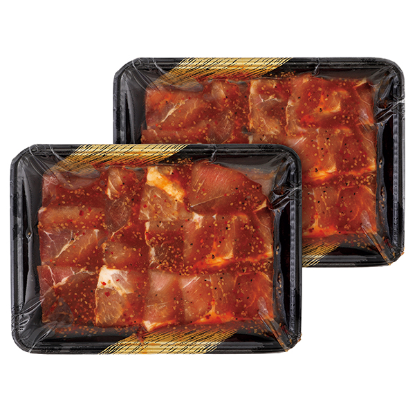沖縄県産の豚肉「あぐー」を食べやすいようにカットして、焼肉用のたれで味付けしました。肉の旨味が感じられる味わいです。レタスなどで包んで、薬味と一緒に食べるのがおすすめです。