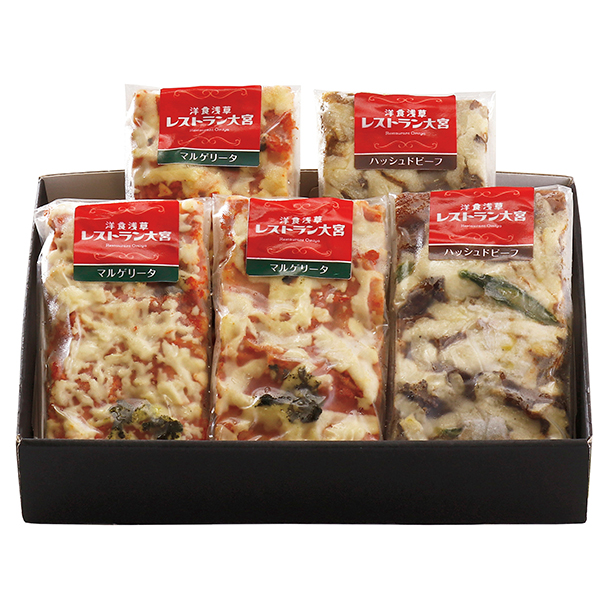 内容:マルゲリータ50g×3枚、ハッシュドビーフ60g×2枚/計5枚(約14cm×7cm)