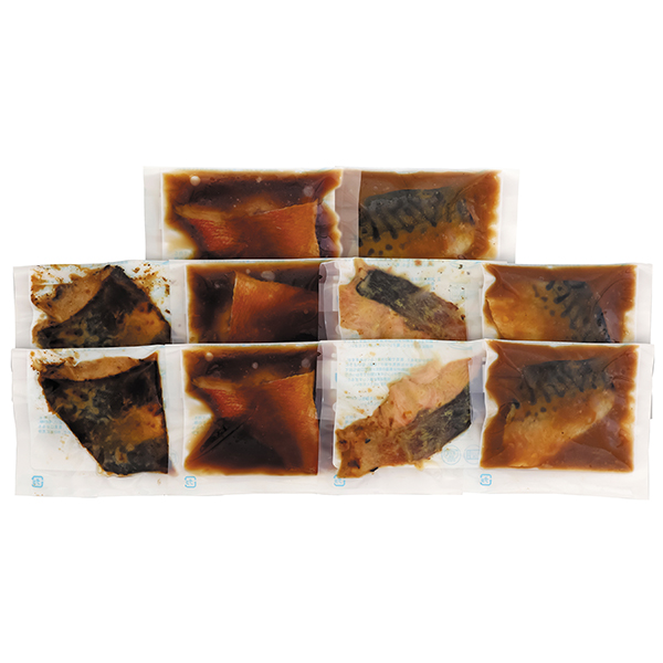 内容:赤魚煮付・さば味噌煮 各50g×3、秋鮭西京焼き・縞ほっけ甘味噌焼き 各50g×2/計10袋