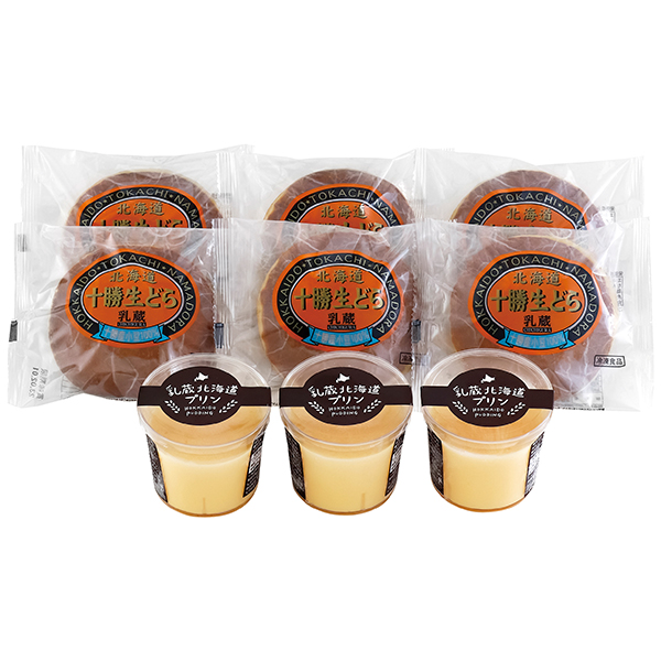内容:北海道プリン100g×3個、十勝生どら70g×6個