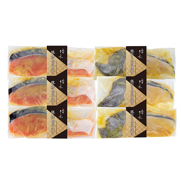 京都市東山区にある京割烹店「祇園さゝ木」が監修した西京漬け。銀だらと銀鮭を程よい甘さの西京味噌だれで漬け込みました。味噌の香ばしさと旨味が引き出された漬魚の、調和のとれた美味しさはご賞味いただきたい一品です。