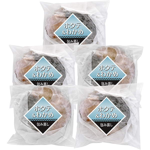 食材の旨味を逃さないように紙で包んで電子レンジで調理する「ホタテとわかめのバター醤油味」の包み蒸しをお届けします。蒸しあがった包みを開いた時の香りがたまりません。