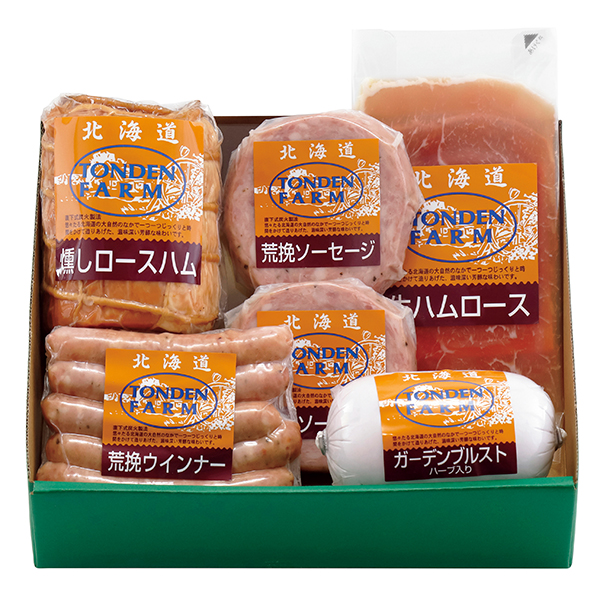 内容:燻しロースハム300g、ガーデンブルスト200g、荒挽ウインナー100g、荒挽ソーセージ70g×2、生ハムロース(スライス)40g