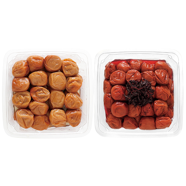 果肉が厚くて柔らかい紀州産南高梅を、国産はちみつでまろやかな味わいに仕上げたはちみつ梅。紀州産の柔らかい梅にこだわった、紫蘇(しそ)の爽やかな香りが魅力のしそ梅。風味の違う2種類の梅干をお楽しみください。