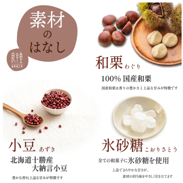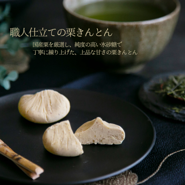 厳選された国産栗と純度の高い氷砂糖で丁寧に練り上げた、上品の甘さの栗きんとん
