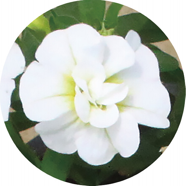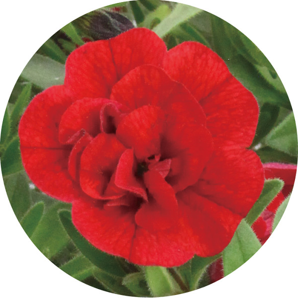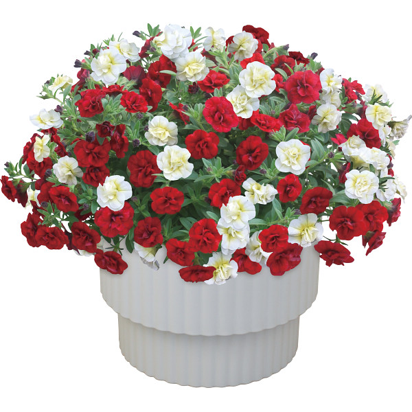 ベルベットのような深い赤色と白のコントラストが豪華なスーパーベルです。こんもりと咲き続けます。切り戻して繰り返し咲くのも魅力です。