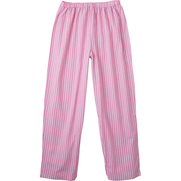 おうちでのくつろぎの時間にピッタリなリラックスウエア。綿、ポリエステル、レーヨン混でお洗濯やお手入れも簡単。シャツ風のストライプ柄の先染め生地を使用。上衣は、すっぽりとかぶって着れ、胸元の切りかえのあるゆったりデザイン。