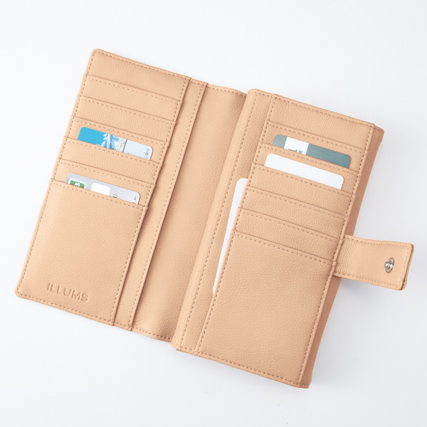 イルムスのシンプルな長財布です。かわいいカラーとカードが12枚も収納できる便利な財布になっております。