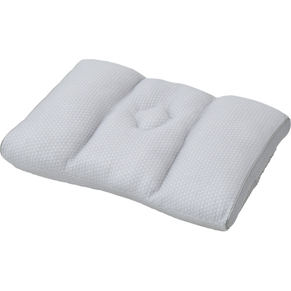 中央のくぼみが頸椎を安定させ、粒綿と、ニット生地で柔らかい感触の枕です。高さ調節用のシートを出し入れし、お好みの高さで使えます。