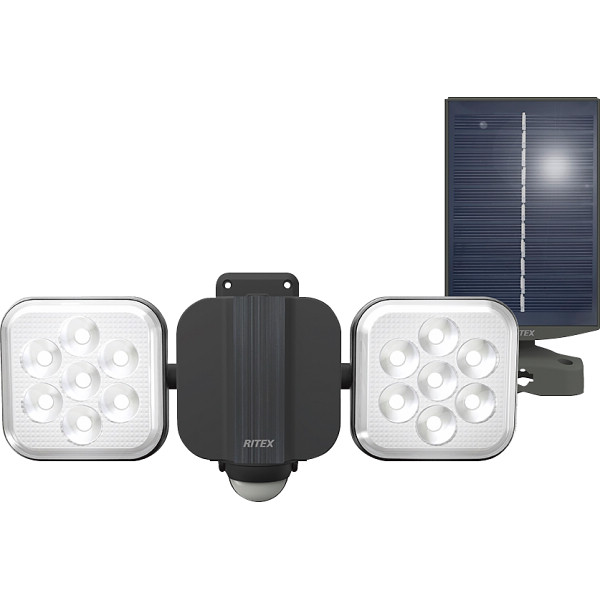 グッドデザイン賞受賞。日照不足時に電源が乾電池に自動切り替え。フリーアーム式で天井付けも可能。