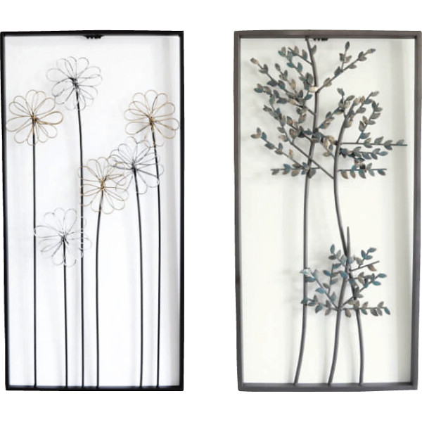 モダンテイストのアイアンウォールアートパネル(壁飾り)2枚セットです。絵を飾る感覚でお部屋のインテリアにどうですか?重さも軽く、ピンで簡単に取り付け可能です♪和・洋・モダン、どんなお部屋にもあわせやすい、とてもオシャレな壁飾りです。