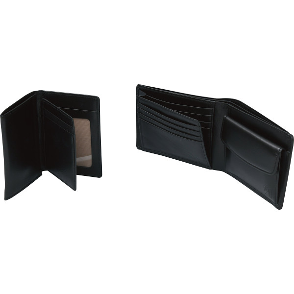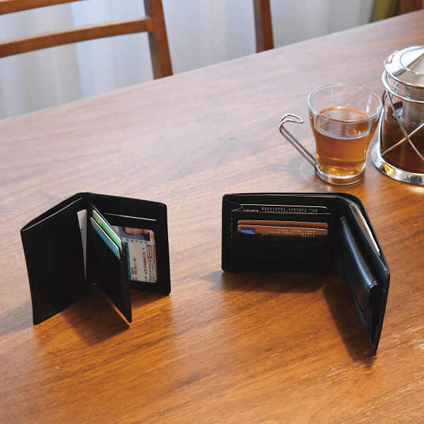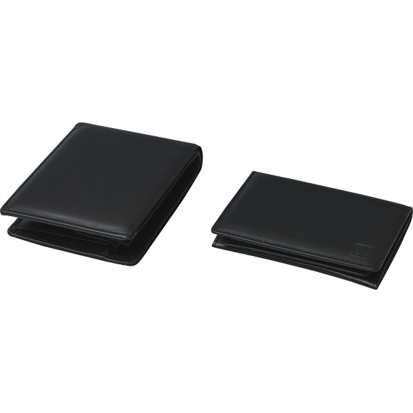 日本の職人さんが一つ一つ丹念に作った中ベラが付いたカードがたくさん入る二つ折れの財布とこちらも中ベラがある名刺入れのセットです。
