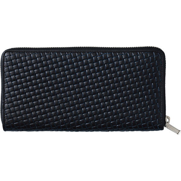 ■日本の職人さんによって丹念に作られた財布です。編み込み風の型押しがされた牛革を使用した、ラウンドタイプの長財布。ポケット、カード入れがたくさんあり、オーソドックスですが使いやすいお財布です。男女兼用でご利用いただけます。