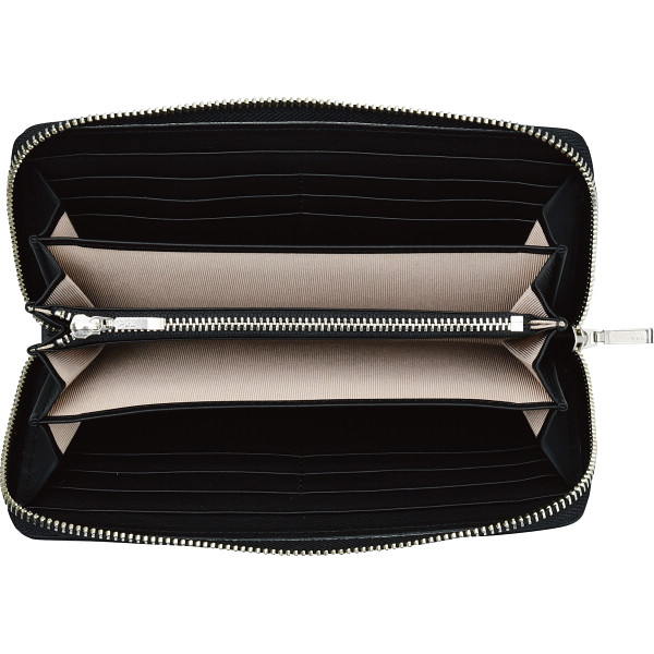 良品工房 日本製牛革型押ラウンド財布 ブラック