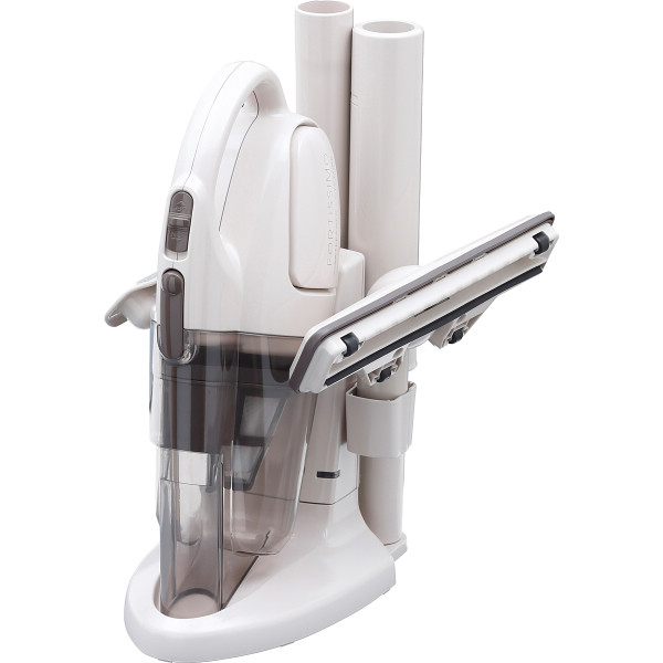 サイクロン方式ハンディータイプのパワフルな掃除機。サイクロン方式なので吸込力が持続。豊富なアタッチメント付属。様々な箇所のお掃除に対応。ワンタッチでホースが出てくるマジックパイプで階段など楽々。6時間充電・充電終了をLED消灯でお知らせ。