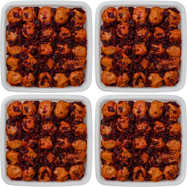 紀州南高梅に「かつお節」と「国産の紫蘇」を合わせた「かつお風味」のまろやかな梅干です。塩分約8%。