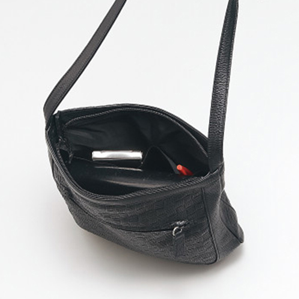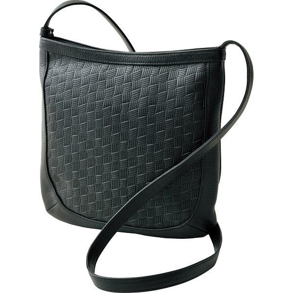 良品工房 日本製牛革型押しショルダーバッグ ブラック