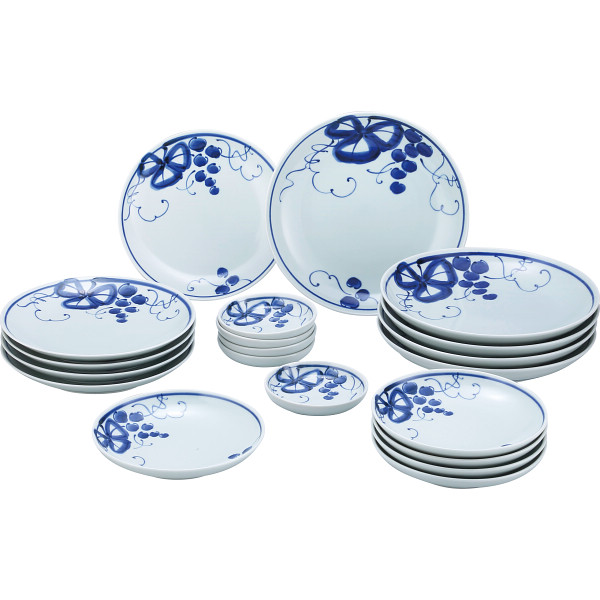 波佐見焼 古染青磁ぶどう絵 ホームセット皿20客揃