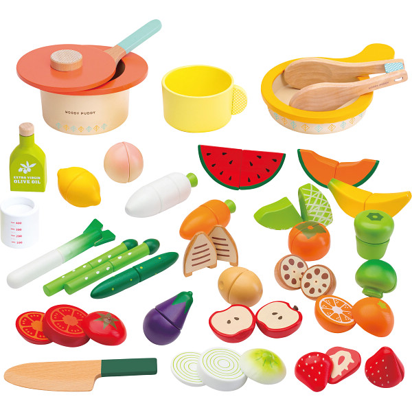 内容:具材23種、包丁、おなべ、ふた、フライパン、スープカップ、オリーブオイル、計量カップ、トング、おたま対象年齢:3歳~