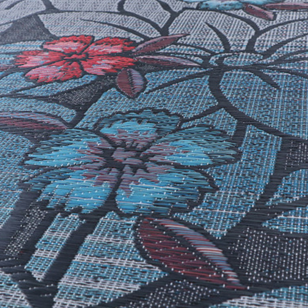 大きな花柄(なでしこ)の日本製い草ラグです。裏に日本製の不織布が付いていますのでクッション性があります。滑りにくい商品です。サイズは191×191cm(約2.4畳)です。