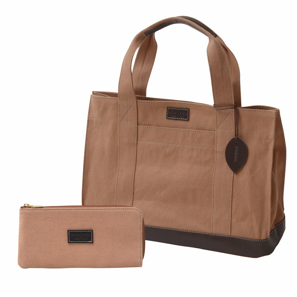 柿渋染で使うほどに色合いがなじみます。 シンプルな使いやすいトートバッグとお揃いの財布のセットです
