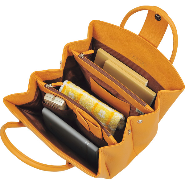 良品工房 日本製牛革ジャバラ式手提バッグ キャメル