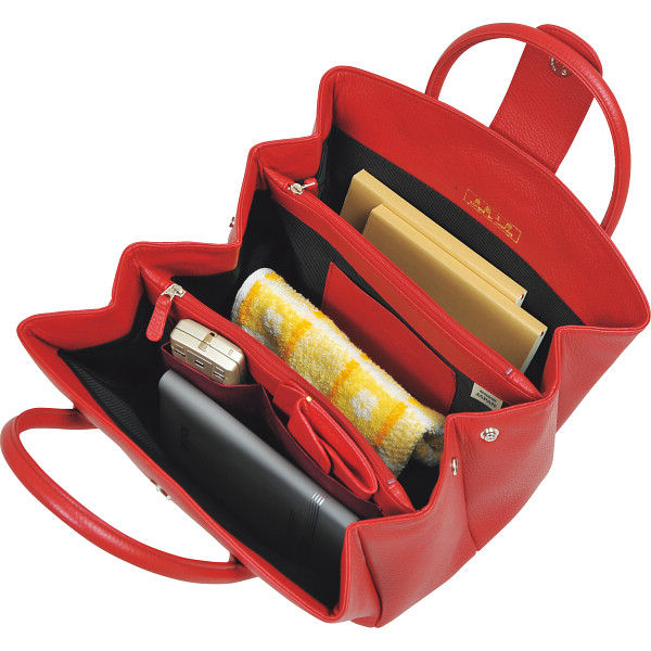 良品工房 日本製牛革ジャバラ式手提バッグ レッド
