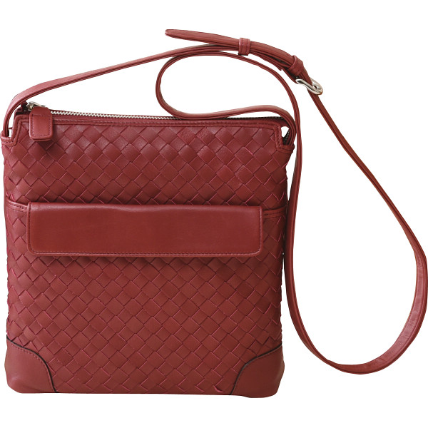 良品工房 日本製牛革編みこみショルダーバッグ レッド