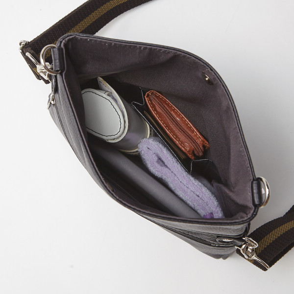内容:前面=ファスナーポケット×1、内側=ファスナーポケット×1・オープンポケット×1、背面=ファスナーポケット×1開閉=マグネットホック式ショルダーベルト付